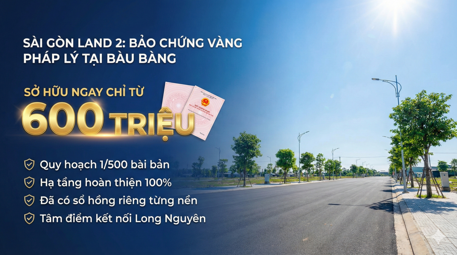Khác với những dự án trôi nổi, Sài Gòn Land 2 đã hoàn thiện đầy đủ các thủ tục pháp lý từ quy hoạch 1/500, nghiệm thu hạ tầng điện âm, nước máy cho đến việc ra sổ hồng riêng từng nền. Sự hiện hữu của những cuốn sổ hồng trao tay chính là bằng chứng thép khẳng định uy tín của chủ đầu tư cũng như tính an toàn tuyệt đối cho dòng vốn của khách hàng.